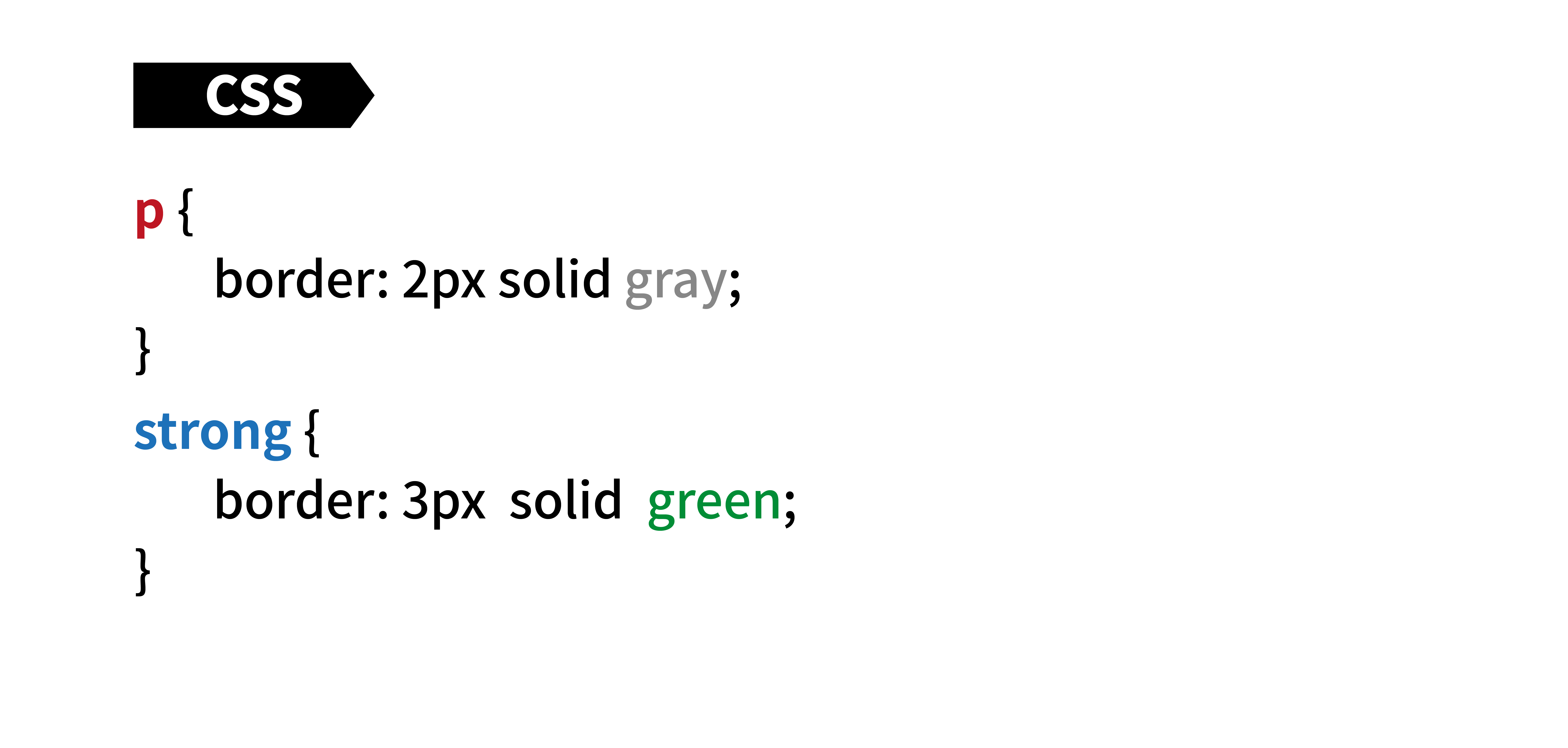 그 다음 CSS에서 속성을 부여해줍니다. 저는 <p>태그에 2px두께의 테두리를 치고 색깔을 회색으로 했습니다. 그리고 <strong>태그는 좀더 두꺼운 3px 두께의 초록 선을 쳤습니다. 그러면 아래와 같이 화면에 출력됩니다.