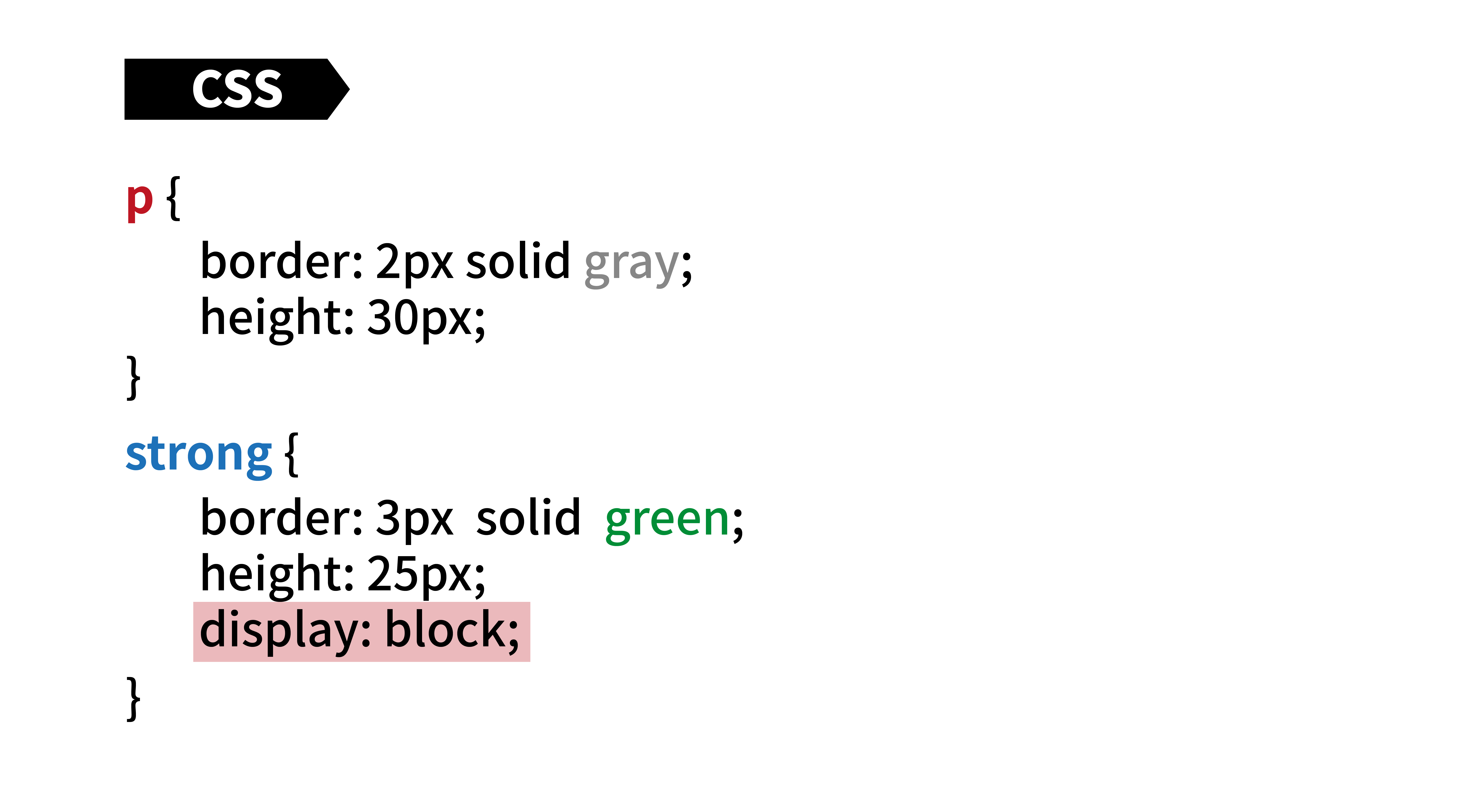 그렇다면 높이와 너비속성을 입력하면 어떻게 될까요? 두 태그에 높이 속성을 부여해봅니다.. <p>태그에는 30px을, <strong>태그에는 20px의 높이를 줬습니다.