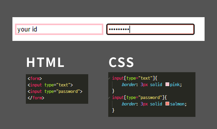 그런 다음 CSS에서 대괄호 [ ] 안에 속성값을 작성하고 저장했습니다. 선택자에는 당연히 input이 들어가야겠죠.